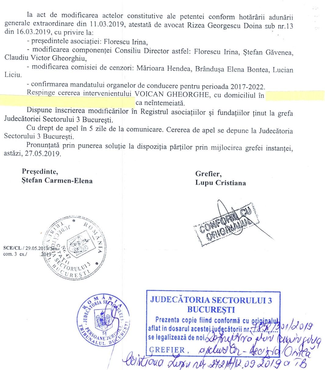 Decizia civilă nr. 816A din 8 martie 2023 în dosarul cu nr. 8172/301/202002 (vezi Hotărâre)  a fost postată de Irina Florescu la inf. AGA 2022 (pt a nu fi văzută) și nu la Anunțuri cum era normal. În aceste condiții este important să cunoașteți Adevărul cu următoarele aspecte: