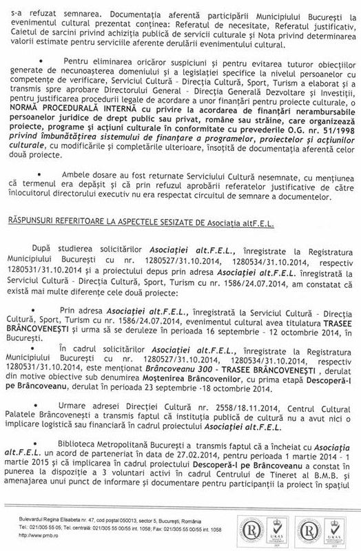 Biblioteca Metropolitană București (BMB) a plătit aproape 36.000 de euro din banii publici pentru organizarea unei expoziții cu  tema „Brâncoveanu la Biblioteca Metropolitană”, unde bucureștenii au putut vedea 60 de panouri care prezentau fotografii pe această temă. Însă pentru o expoziție cu aceeași temă și cu panouri identice, însă duble la număr–120 de panouri- organizată în aceeași perioadă, Institutul Cultural din New York a plătit o sumă de șase ori mai mică: 5.800 de euro. Firma câștigătoare a licitației pentru expoziția de la BMB a fost o firmă abia înființată, a Mihaelei Vișan-Miu, soția lui Radu Vișan-Miu, apropiat al directoarei Bibliotecii Metropolitane București, Anca Râpeanu. La licitație au fost trei firme participante, dintre care două ale Mihaelei Vișan-Miu.