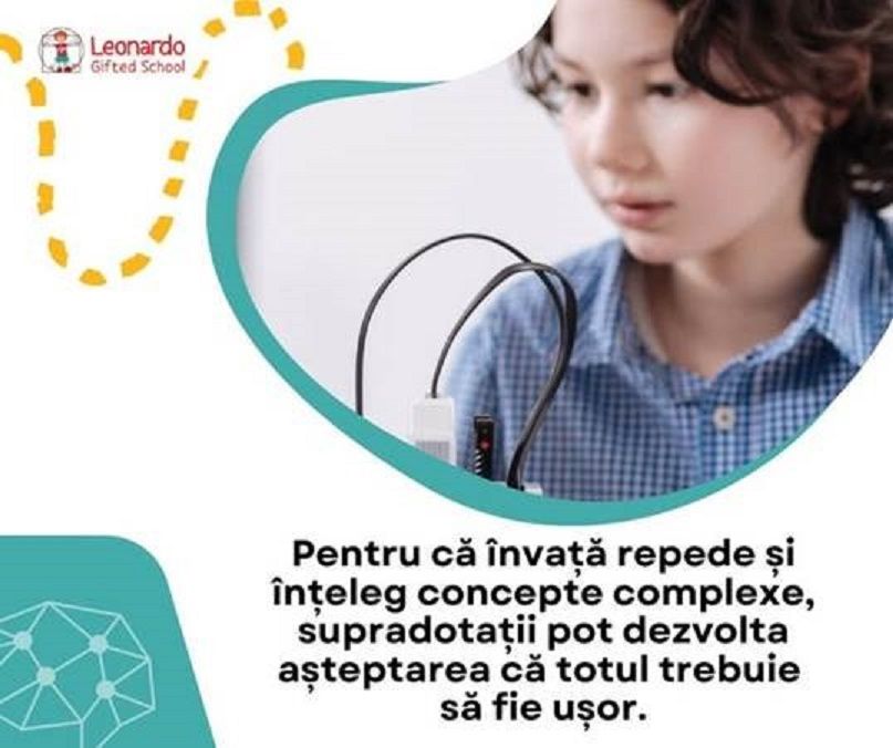 Cui se adresează Leonardo School? Leonardo School se adresează copiilor supradotați între 3 și 12 ani care nu pot performa la adevărata lor valoare în școlile existente. Înțelegem că copiii supradotați au nevoie mai întâi de un echilibru adecvat între IQ-ul lor ridicat (peste 130) și EQ-ul lor (de obicei mai mic decât IQ-ul) și apoi vor putea performa cu propria lor viteză. Leonardo School se adresează copiilor supradotați care caută în prezent alternative la educația standard. Știm să facem învățarea interesantă, plină de bucurie și cu adevărat eficientă. Ce altceva este posibil? Nu trebuie să treci prin durerea școlii tradiționale pentru a-ți realiza potențialul. Poți fi liber să o faci de la început. Și fii printre prieteni, copii ca tine. Copilul tău este dotat? Iată 12 semne. Fără aceste strategii, frustrarea poate deveni o barieră în calea dezvoltării sale academice și personale. Leonardo Gifted School este o școală specială în cadrul Centrului Gited Education creată pentru copiii care vor să-și activeze potențialul intelectual și să crească într-un mediu în care sunt acceptați, înțeleși, susținuți și să aibă șansa la o viață împlinită.