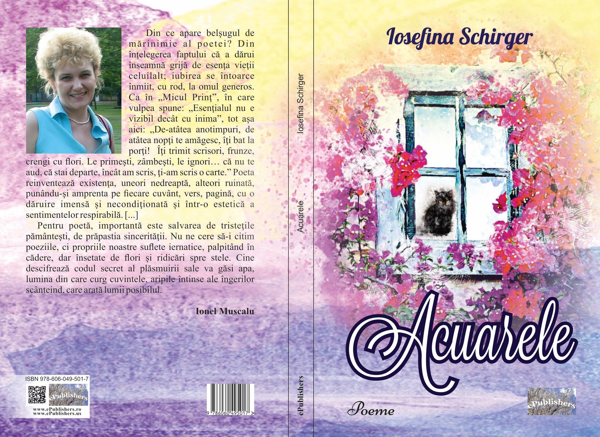 Iosefina Schirger. Născută în 16 februarie 1971 în Drăgăşani, judeţul Vâlcea, absolventă a Facultăţii de Chimie a UBBC din Cluj-Napoca şi a Academiei de Ştiinţe Economice Bucureşti. Cărţi de poezii publicate: Pânze de păianjen (Editura Mesagerul, Cluj-Napoca, 1997), Nouăzeci şi nouă (Editura Antim Ivireanul, Rm. Vâlcea, 1998), Al cincilea anotimp (Editura Moldova, Iaşi, 1999), volume online: Poezii din 2000, Studii, Fantezii (Editura Sfântul Ierarh Nicolae, 2018), Geometrii, Ipostaze, Călătorii, Stări fără nume, Dezordini, Orbitale, Nonsensuri (Editura Sfântul Ierarh Nicolae, 2019), Variaţiuni, Fantasme de creță, Cai verzi, Dinamică, Diversiuni, Ulciorul cu poezii, Totul e poezie, Compendiu de poezie Piramidă de euri, Integrală de retorică (Editura Sfântul Ierarh Nicolae, 2020), Colecţia de zmeie, Lecţie de zbor în gând (Editura Sfântul Ierarh Nicolae, 2021), Poveste fără sfârşit, Accente, Neîntâmplate, Planete în dar, O mare-ntr-o carte, Nocturne, Aventură în cer, Şcoala de vise, Cum să-ţi spun, Poeme cu noi, Unul spre altul (Editura Sfântul Ioan, 2021) Editura ePublishers îi publică în 2022 următoarele cărți: Fântâna cu stele, Abstracțiuni, Poezii în nisip, Poezii cu aripi și nerv, Vorbiri la limită, Întâlniri lirice, Acuarele, Meandre cu noi, Scrieri, Cartea mea fermecată, Răsfățuri Insomnii, Flori de hârtie, Frazări, Cuvinte sfere, Iureșuri, Războaiele mele.