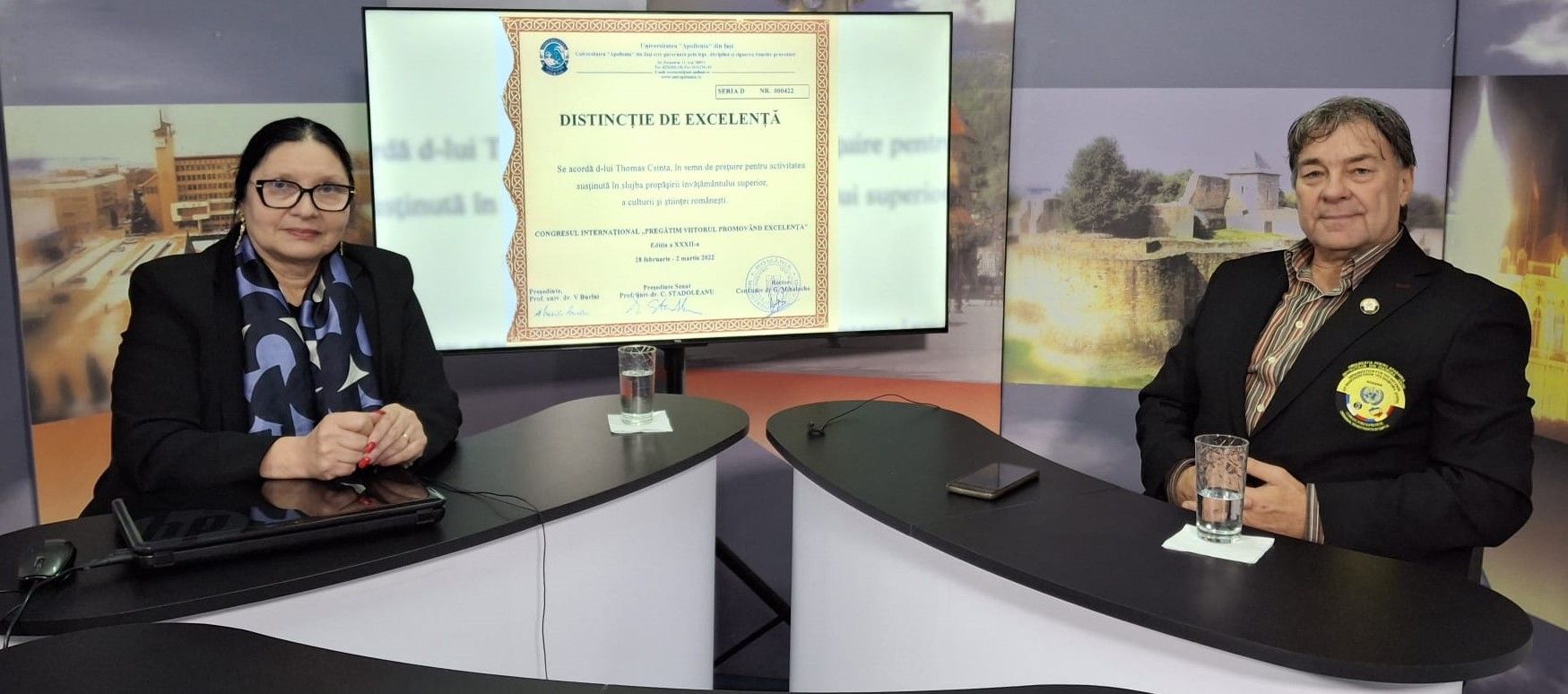În sfârșit, corelarea celor două direcții are loc prin furnizarea de subiecte de teze de doctorat și de cercetare în domeniul socio–judiciar instituției cu caracter academic CUFR R&D de către Serviciul Internațional de Investigații Crimiale al Jurnalului Bucureștiului, în cadrul căreia, pentru rezultatele de excepție obținute, am fost distins cu Cavaler al Ordinului „Crucea de Aur” a Drepturilor Omului a Națiunilor Unite și sunt propus în 2028 pentru Marele Premiu ONU (acordat la fiecare 5 ani), echivalentul Premiului Nobel pentru Drepturile Omului. În încheiere, precizez faptul că în era noastră a transnaționalismului, în contextul mobilității academice românești tot mai active, cred că pentru profesori, cercetători și studenți din diaspora, postul de televiziune M+Tv International nu va fi doar un instrument de informare, dar și o continuitate spirituală cu spațiul cultural românesc.