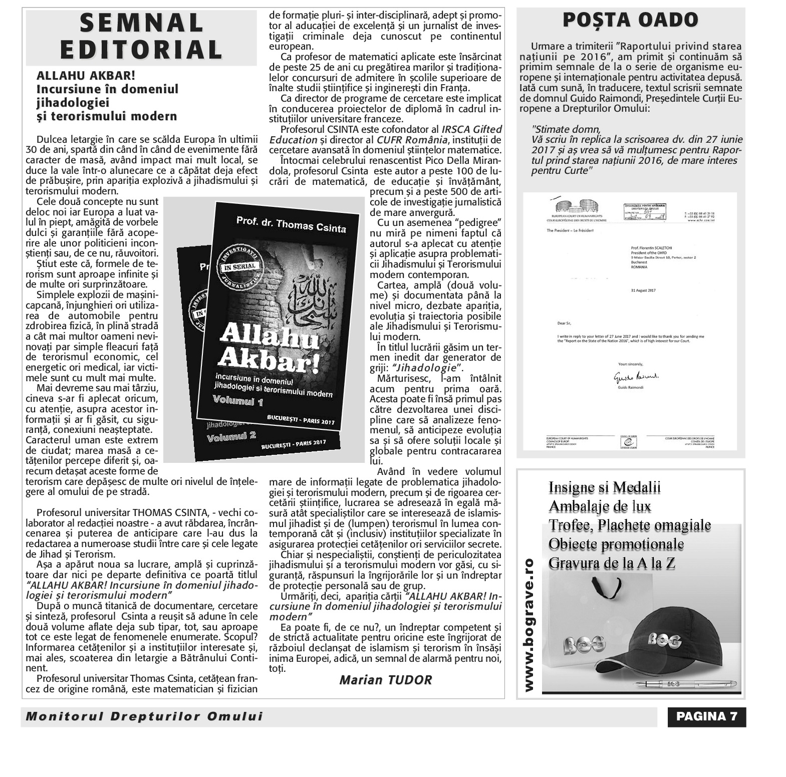 Articolele Lordului Florentin Scaletchi în Jurnalul Bucureştiului Organizația pentru Apărarea Drepturilor Omului (OADO)