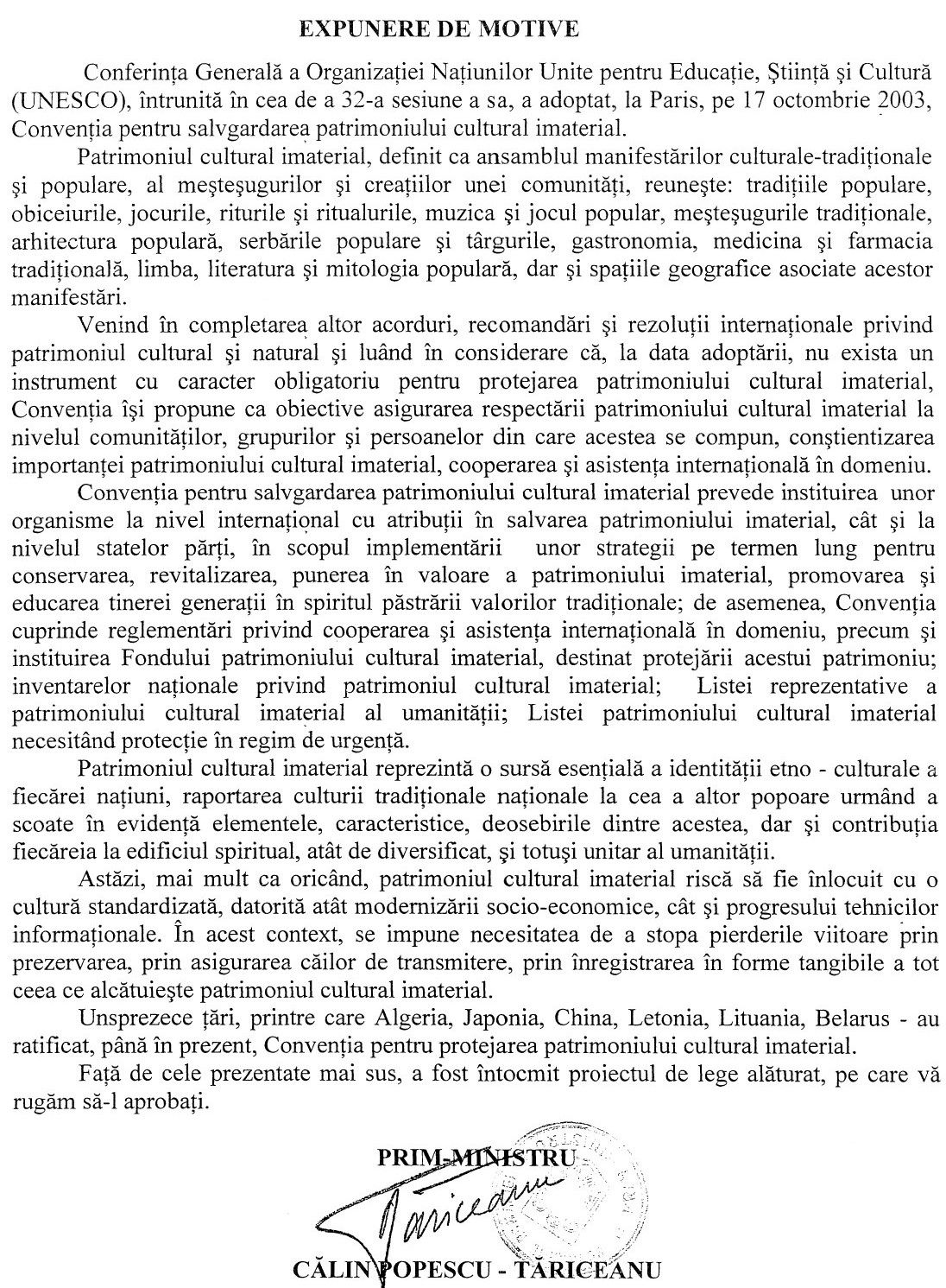În fiecare an, comunitatea internațională marchează, pe data de 17 octombrie Ziua Patrimoniului Cultural Imaterial, un moment dedicat valorizării și protejării tradițiilor, meșteșugurilor, expresiilor artistice și obiceiurilor care definesc identitatea culturală a popoarelor. Conceptul de patrimoniu cultural imaterial a fost recunoscut oficial la nivel global prin Convenția UNESCO pentru salvgardarea patrimoniului cultural imaterial, adoptată la Paris, în anul 2003. Această convenție a fost creată ca o completare la Convenția Patrimoniului Mondial din 1972, care proteja în principal patrimoniul material–monumente, situri istorice și naturale. UNESCO a dorit, prin documentul din 2003, să ofere o recunoaștere egală formelor vii ale culturii, care se transmit din generație în generație și conferă comunităților un sentiment de identitate și continuitate. Astfel, prin Convenția din 2003, statele semnatare s-au angajat să inventarieze, protejeze și promoveze elementele patrimoniului cultural imaterial, în cooperare directă cu comunitățile purtătoare. Ca urmare a Convenției 2003, a Lista reprezentativă a patrimoniului cultural imaterial al umanităţii. În acest moment România are înscrise în acestă listă 10 elemente, care pot fi descoperite în broșura Comisiei Naționale a României (CNR) pentru UNESCO dedicată acestei teme.