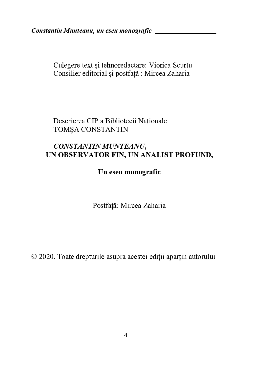 Acasă Carte - Editură Constantin Tomșa: „Constantin Munteanu, un observator fin, un analist profund” (eseu...