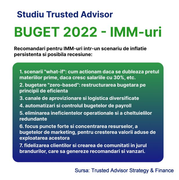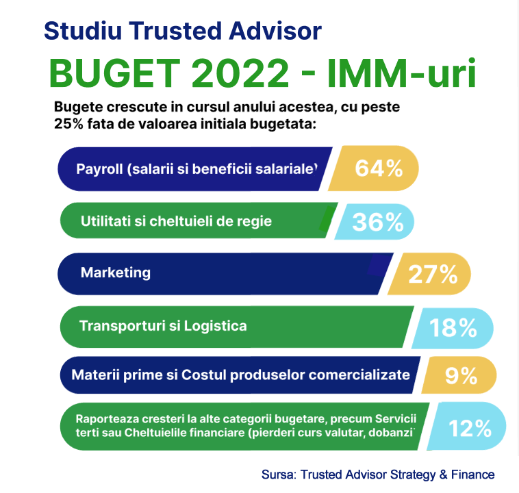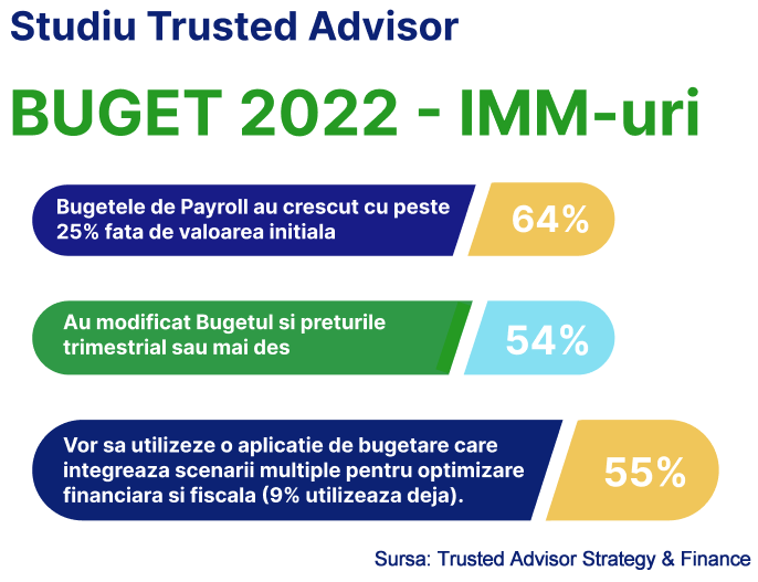 Rezultatele Analizei „Buget 2022-IMM-uri”–studiu realizat de Trusted Advisor Strategy & Finance în luna august confimă bugete crescute în cursul anului acesta, cu peste 1/4  față de valoarea inițială bugetată:
