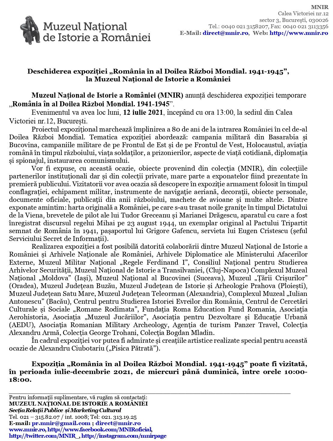 Notă. A se vedea și celelalte Comunicate de presă ale MNIR (Muzeul Național de Istorie a României) în Jurnalul Bucureştiului
