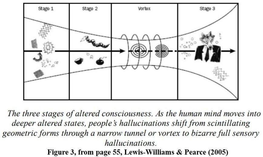 O explicație provocatoare a fost oferită de D. Lewis-Williams și David Pearce, în cartea lor, „Inside the Neolithic Mind: Consciousness, Cosmos and the Realm of the Gods” (Lewis-Williams și Pearce, 2005). Conform acestei cărți, spirala este strâns asociată cu o etapă de conștiință alterată care duce la experiențe vizionare-vezi foto. Există și alți autori care văd spiralele ca un simbol al trecerii sufletelor către nemurire. Privind megaliții antici împrăștiați în întreaga lume, există o percepție generală că spiralele sculptate ar fi reflectat eternitatea. Nu putem doar să credem că omul neolitic a avut acces la meditație intensă, hipnoză și experiențe cu substanțe psihedelice precum cornul de secară. Dar știm cu siguranță că creierul modern s-a format de-a lungul multor milenii. În epoca de piatră pare plauzibil ca acesta să fi fost într-o formă mai primitivă, cu mai mult acces la propriile simboluri interne.