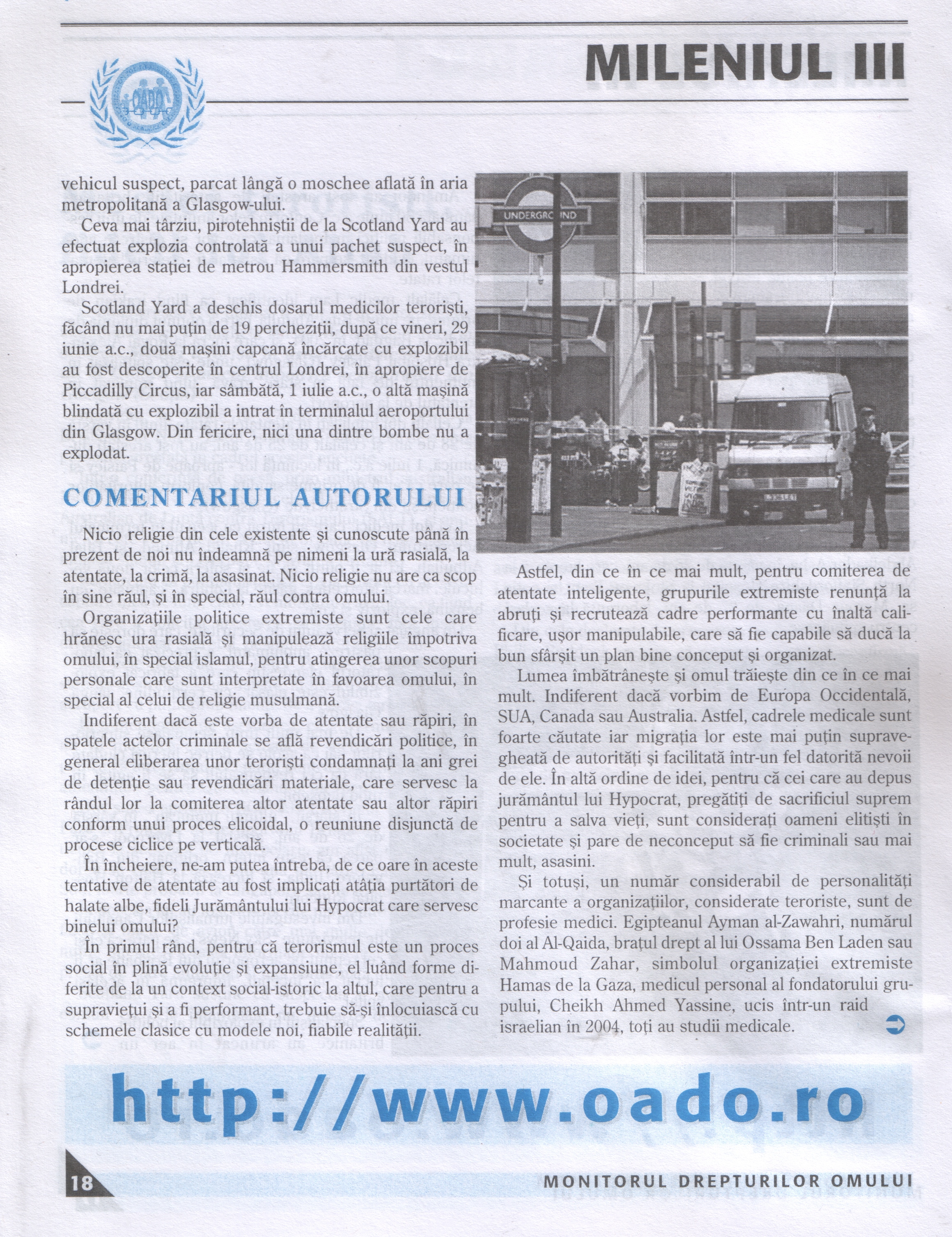 Pe 6 iulie 2005, Londra este desemnata de catre Comitetul International Olimpic ca oras–gazda al Jocurilor Olimpice de vara din 2012, iar între 6–8 iulie are loc în Gleneagles Hotel, Perthshire (regiunea urbana Edinburgh–Scotia), summitul G8[1] (al celor 7 mari puteri economice si politico–militare: SUA, Japonia, Germania, Franta, Marea Britanie, Italia, respectiv, Canada, cu participarea Rusiei). Pe 7 iulie, 4 tineri islamisti britanici, radicalizati, angajati în jihad vor comite 4 atacuri teroriste (atentate sinuicigase) în transportul public londonez (dintre care 3 cuasisimultane) în care vor ucise 56 de persoane si vor rani alte 700. Primele 3 explozii au loc la ora (locala) 08h50 în 3 vagoane ale metroului londonez la statiile Moorgate/Aldgate East/Liverpool Street, Russell Square/King’s Cross si Edgware Road, iar cea de a 4-a, la ora 09h47, la etajul unui (celebru) autobuz imperial (de doua nivele) în Tavistock Square.
