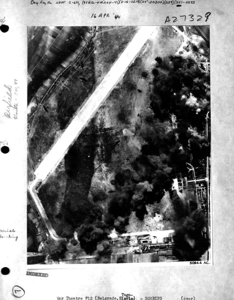 Aerofotogramă a bombardamentului american asupra Belgradului, aprilie 1944