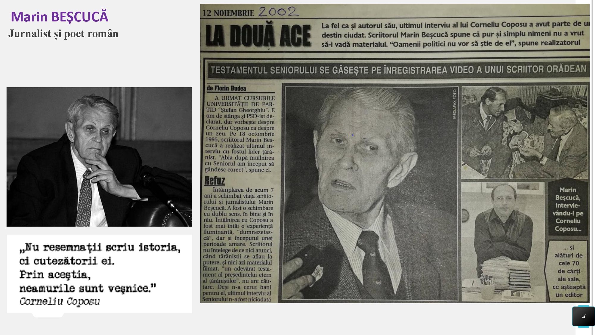 Corneliu Coposu: Ultimul interviu, cu ziaristul și scriitorul Marin Beșcucă, membru UZPR (Uniunea Ziariștilor Profesioniști din România)