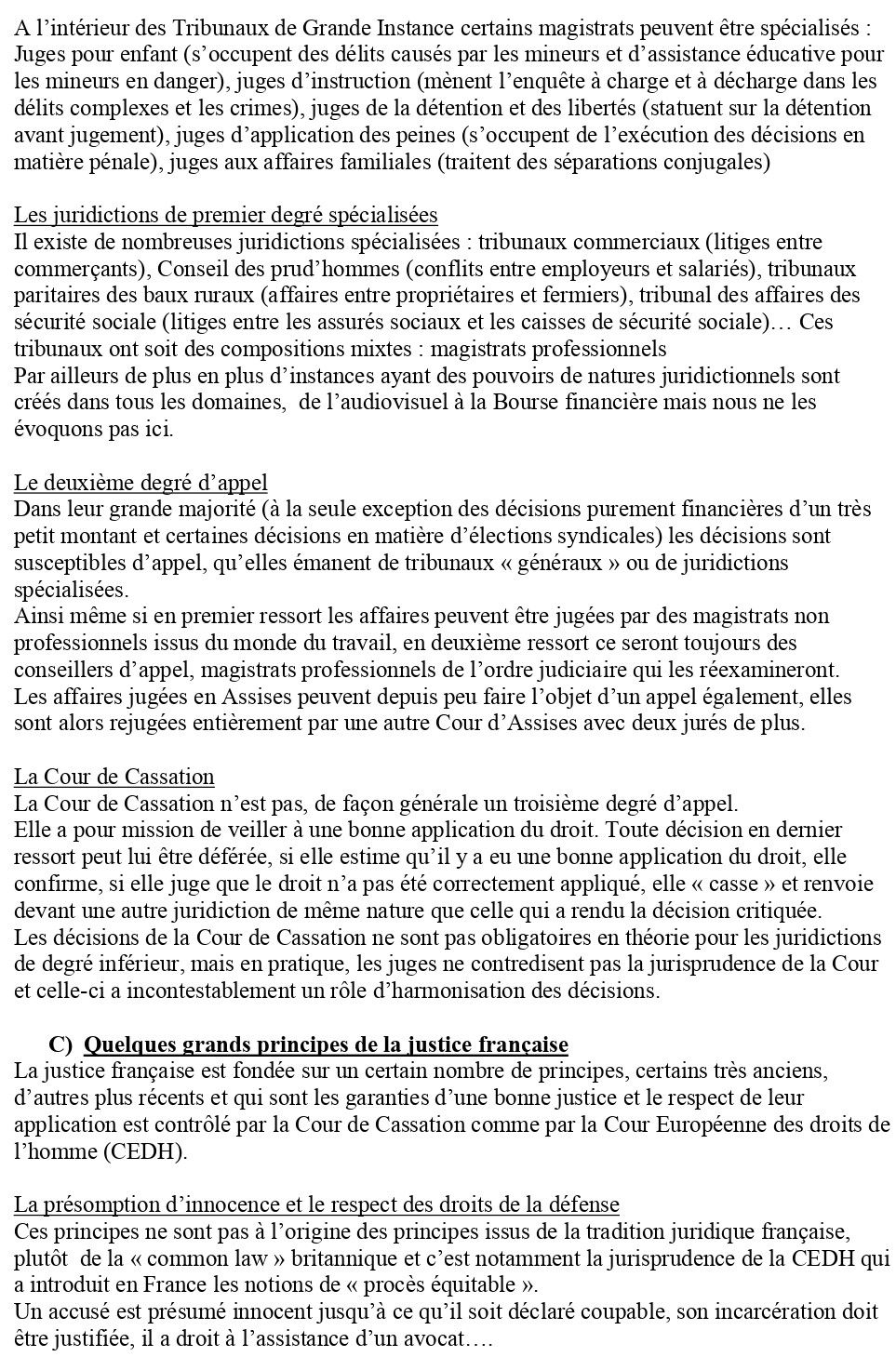 - Juridiction suprême (La Cour de cassation règle les différends, sans juger les faits, mais en contrôlant la bonne application de la loi)
