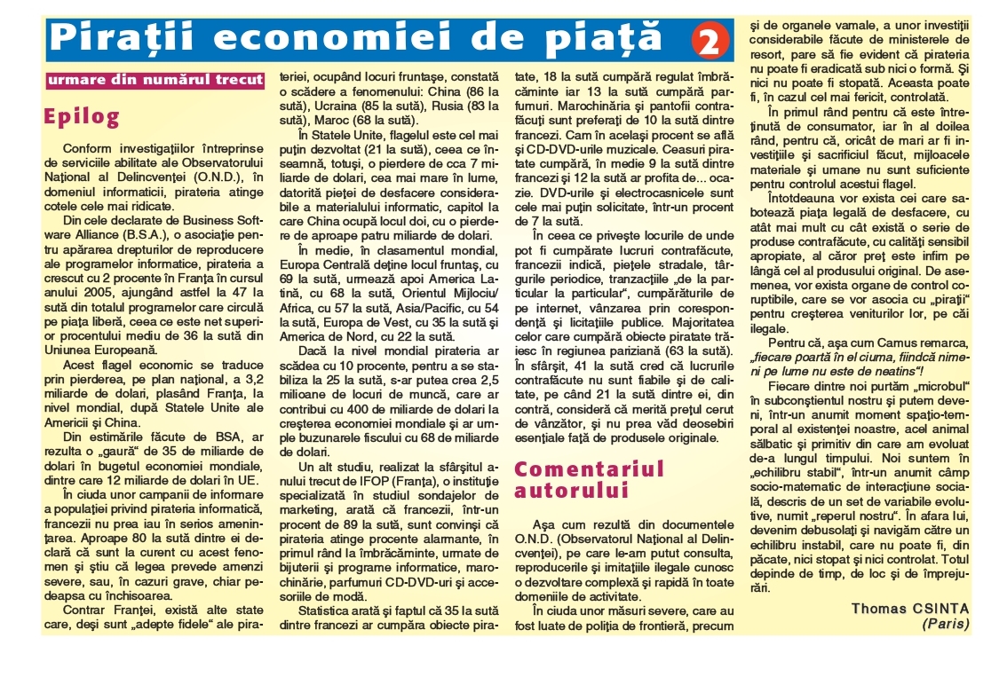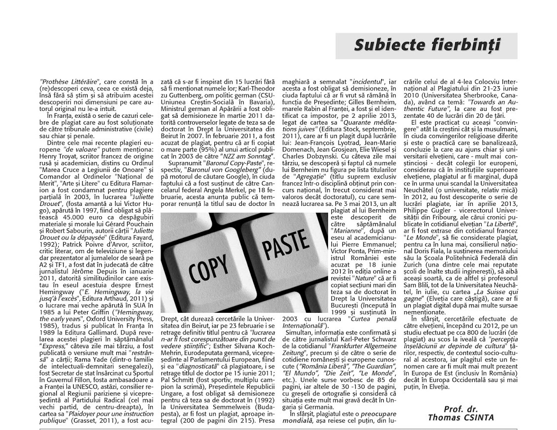 Plagiatul în lumea contemporană Monitorul OADO (Organizația pentru Apărarea Drepturilor Omului – Națiunile Unite – prof. univ. dr. Thomas CSINTA)