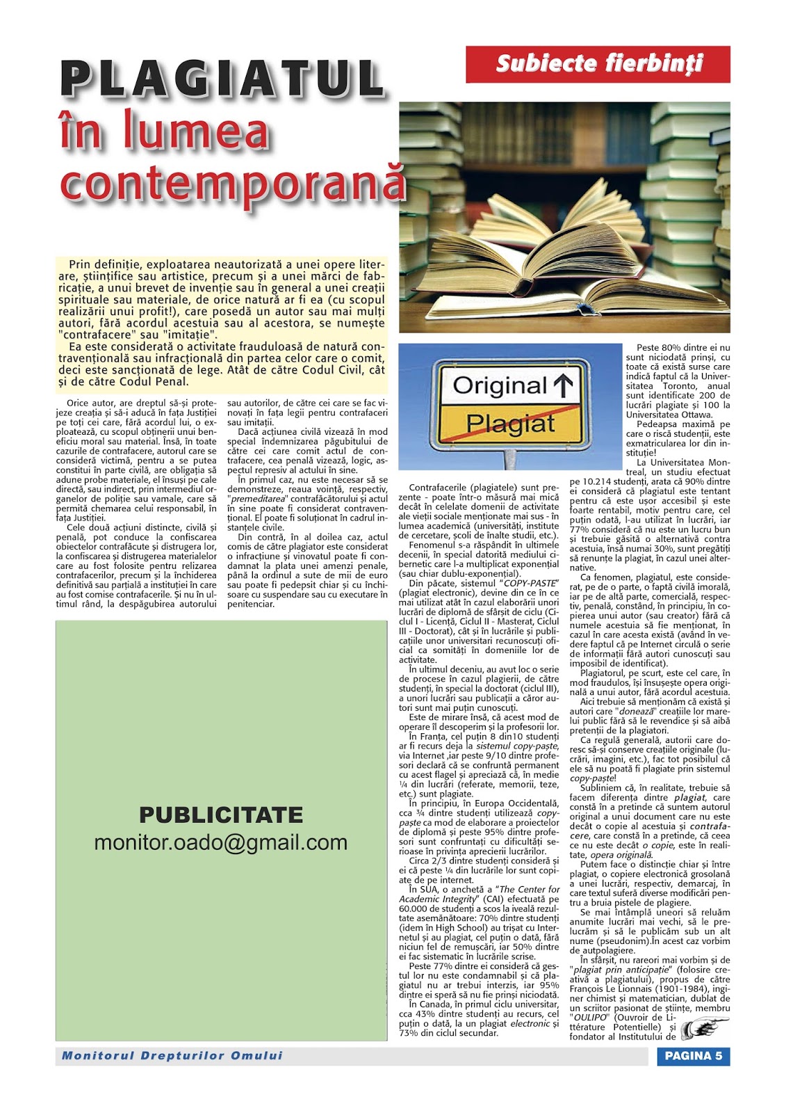 Acasă Investigații jurnalistice (criminale) și științifice Plagiatul în lumea contemporană Monitorul OADO (Organizația pentru Apărarea Drepturilor Omului –...