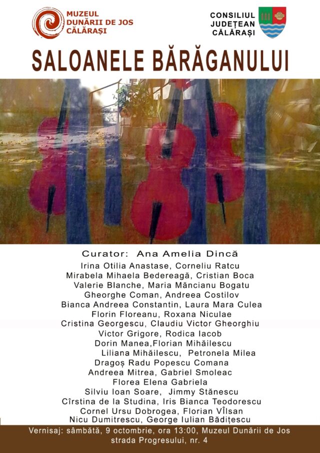 Sâmbătă, 9 octombrie 2021, de la ora 13h00, la sediul Muzeului Dunării de Jos din str. Progresului nr. 4, va avea loc vernisajul celei de-a doua ediții a “Saloanelor Bărăganului”, un eveniment al cărui curator este Ana Amelia Dincă, critic de artă. Întâlnirea artiştilor plastici cu publicul iubitor de artă se va face în condiţiile impuse de pandemie. Muzeul Dunării de Jos este o instituţie de cultură, aflată în subordinea Consiliului Judeţean Călăraşi, director general al Muzeului find domnul Valentin Parnic, arheolog. Este un eveniment recomandat de Jurnalul Bucureştiului („Le Petit Parisien”) şi Intell News Romania (al căror Senior Editor sunt).