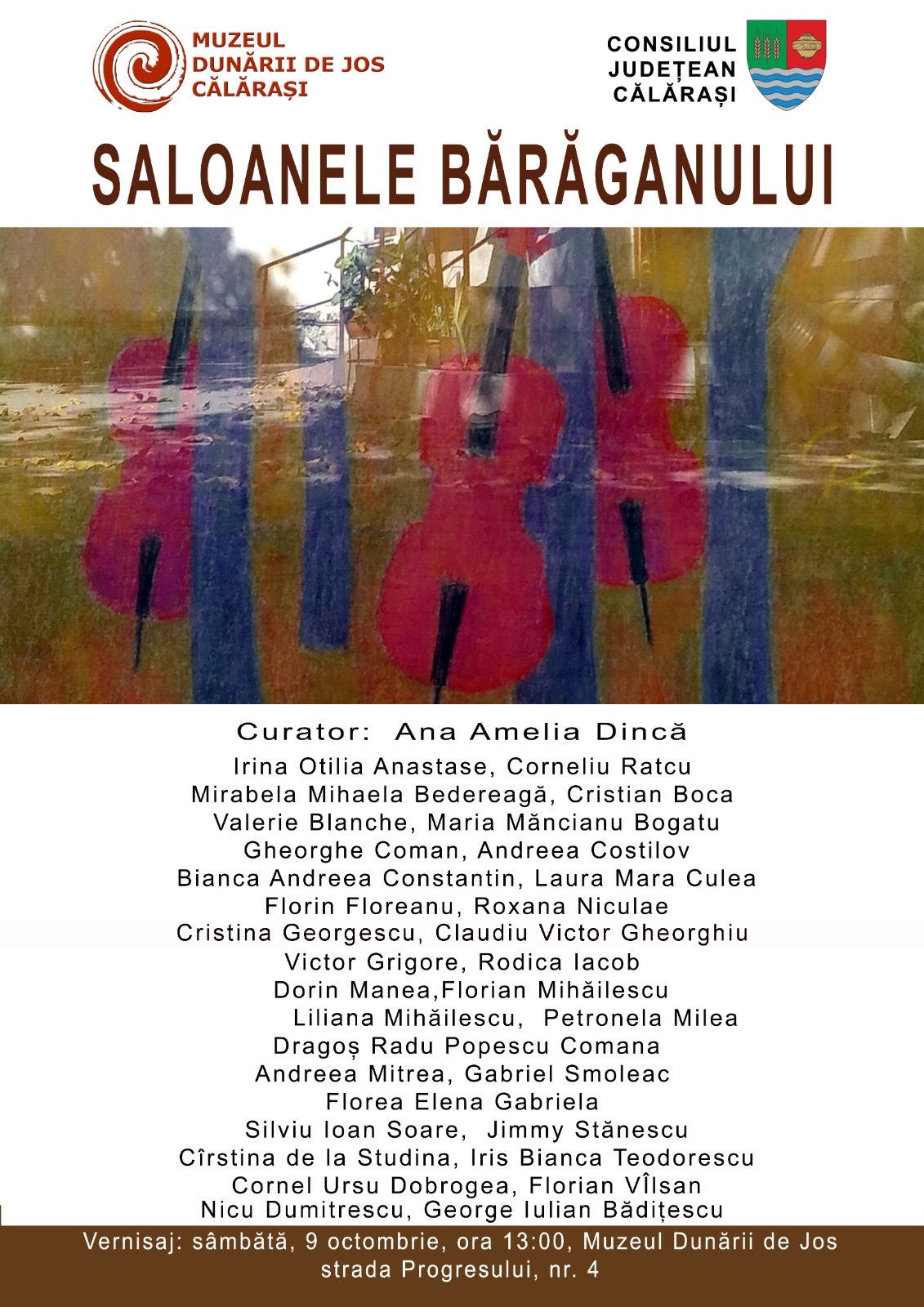 Sâmbătă, 9 octombrie 2021, de la ora 13:00, la sediul Muzeului Dunării de Jos din str. Progresului nr. 4, va avea loc vernisajul celei de-a doua ediții a "Saloanelor Bărăganului", un eveniment al cărui curator este Ana Amelia Dincă, critic de artă. Muzeul Dunării de Jos este o instituţie de cultură, aflată în subordinea Consiliului Judeţean Călăraşi, director general al Muzeului find domnul Valentin Parnic, arheolog. Este un eveniment recomandat de Jurnalul Bucureştiului şi Intell News(al căror Senior Editor sunt). A consemnat pentru cele două platforme de presă, precum şi pentru Uniunea Artiștilor Plastici din România: Claudiu Victor Gheorghiu, 08.10.2021