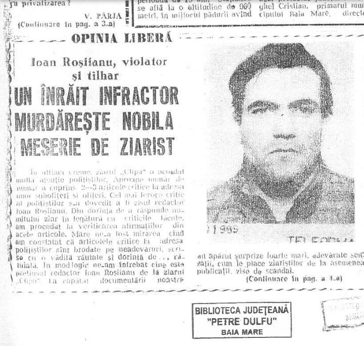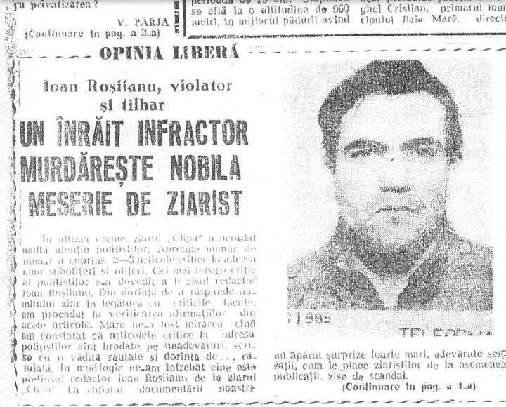 „Ne îngrozește modul ipocrit și jenant pe care îl etalează unii indivizi, infractori  recidiviști, transformați în lupi moraliști peste noapte!  Și atunci trebuie să le reamintești cine sunt ei de fapt.  Sunt aceia care lovesc bestial femei fără apărare și pentru care fapte ar trebui trimiși acolo unde au mai fost: după gratii, sunt aceia pe care judecătorul și executorul îi obligă să își plătească pensia alimentară către copiii lor și altele. pentru că nu am inventat noi gaura la covrig sau macaroana, iată două fotografii din dosarul de pușcăriaș de drept comun a unuia care și-a spus în mai multe feluri: Ioan Falcă, Ioan Romeo Florean (după nevasta) și mai nou Ioan Romeo Rosiianu. Pe lângă fotografii, va lăsăm să citiți materialul publicat pe două pagini (1 și 4) în Graiul Maramureșului din 3-4 iulie 1993 (aflat și în biblioteca județeană Petre Dulfu) intitulat „Ioan Rosiianu, violator și tălhar - Un înrăit infractor murdărește nobila meserie de ziarist", un material semnat de un cunoscător al dosarelor inracționale penale ale lui Falcă, Lt. col. Emil Bote, fost șef serviciu al IPJ Maramureș. Aflăm când a fost condamnat și pentru ce și că a fost eliberat din Penitenciarul Baia Mare pe 9 martie 1993." (https://investigatie-jurnalistica.blogspot.com/2020/04/rosiianu-ioan-romeo-falca-lupul-isi.html)