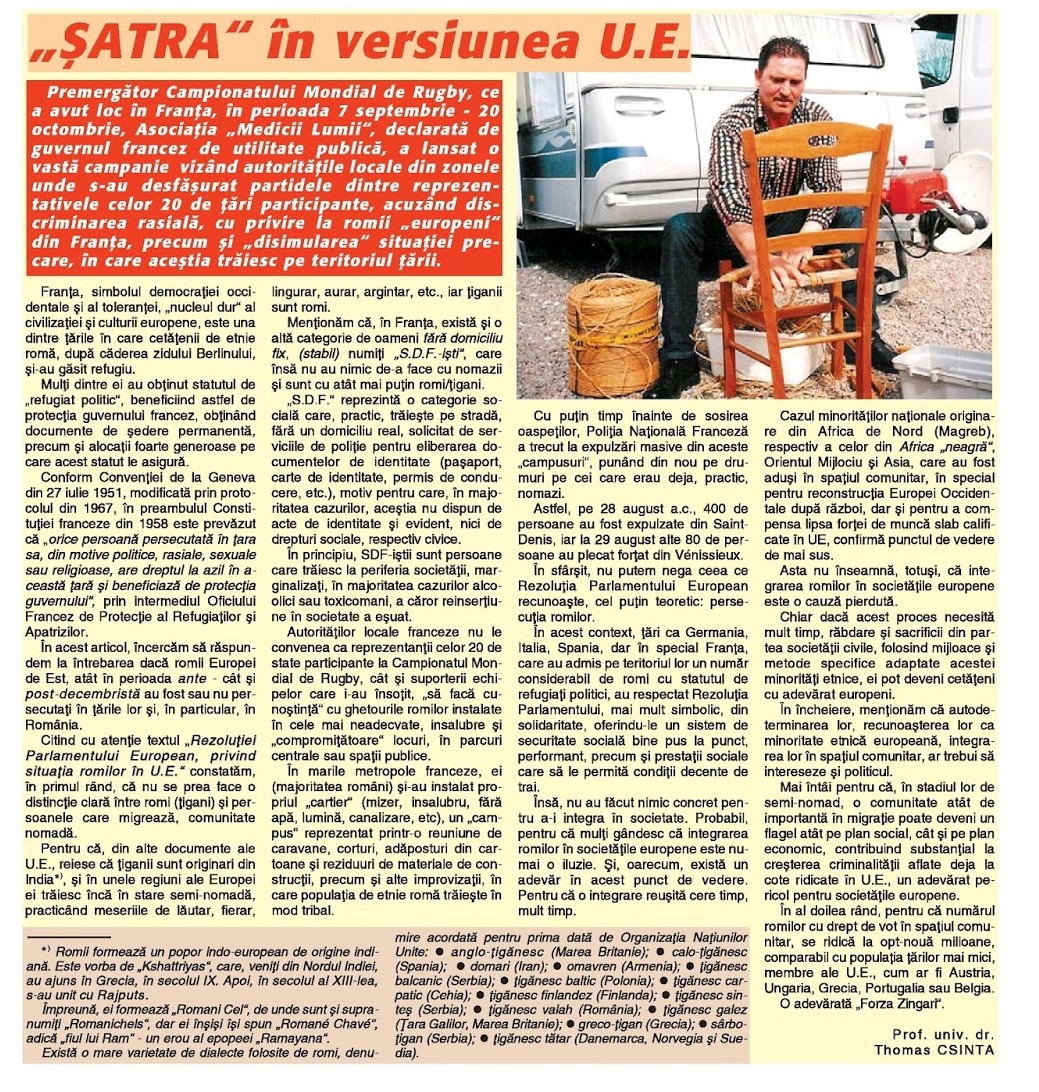 Rromii noștri, „nesedentarii” lui Ion Iliescu (Corespondență din Franța – prof. dr. Thomas CSINTA)